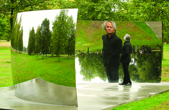 거울 작품과 아니쉬 카푸어 또한 변화하는 하늘, 거리의 모습, 사람들의 움직임을 시간의 흐름에 따라 그대로 거울에 반사한다.